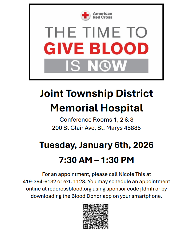 January 6th - Blood Drive at Joint Township District Memorial Hospital